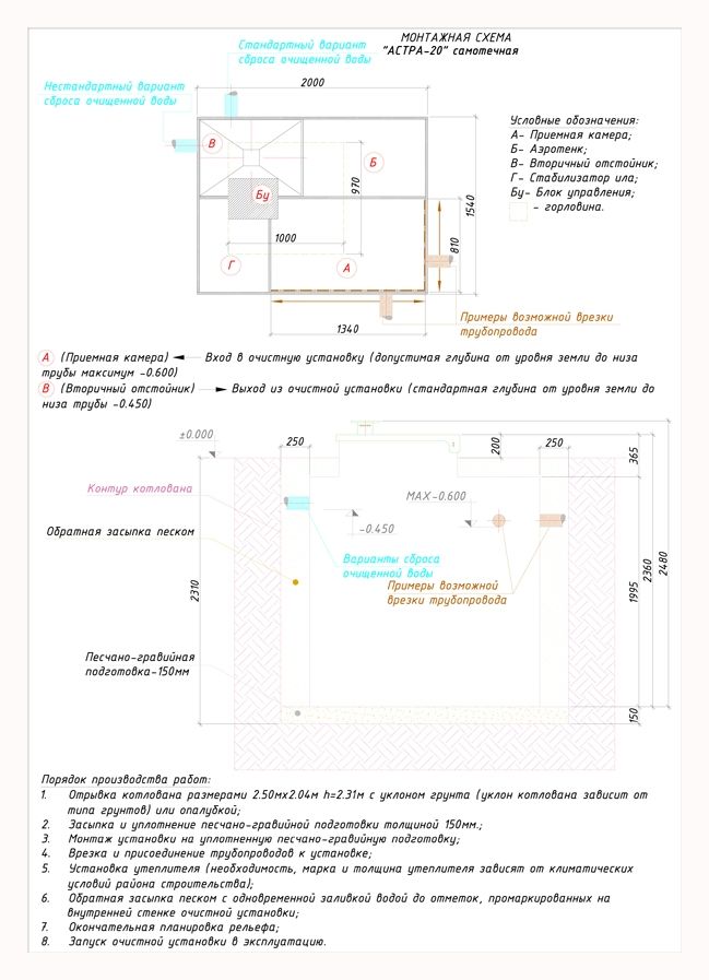 • готовый к эксплуатации Септик Астра 20 передается заказчику в полностью готовом к эксплуатации состоянии.