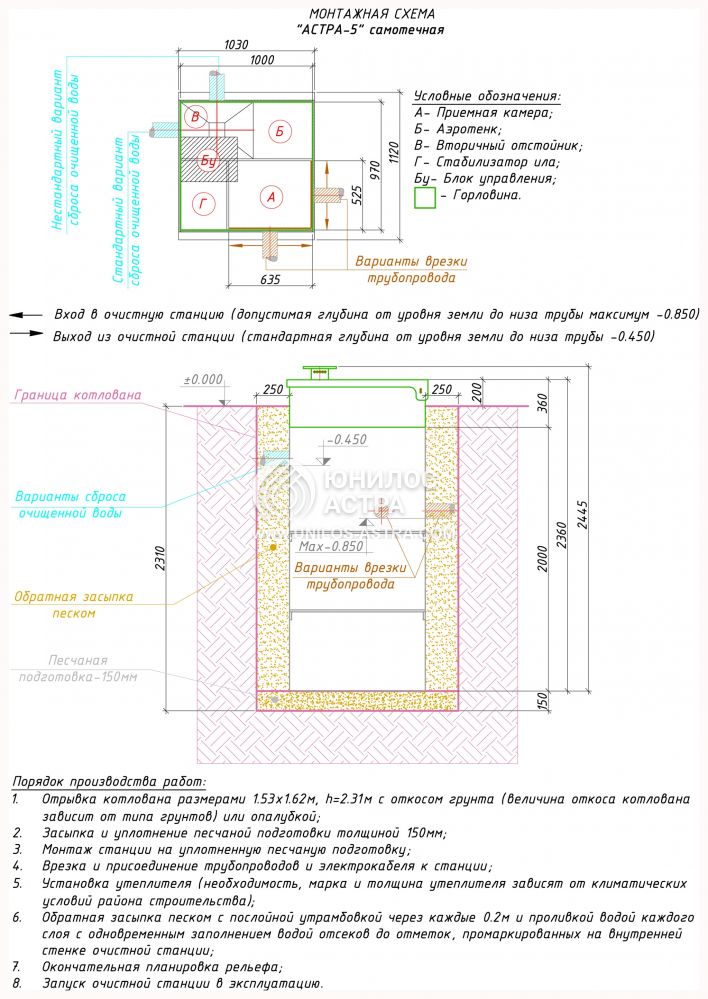 Септик Юнилос Астра 5 рекомендуется обслуживать не реже одного раза в год для ликвидации засорения отсеков иловым остатком.